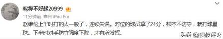 不少球迷對于趙維倫的表現表達不滿,甚至上升到被“包裝太好”身體素質相對比較一般,且沒有太大個人優勢可言,尤其是缺乏硬解能力,這讓賽后出現了大量爭議聲音。