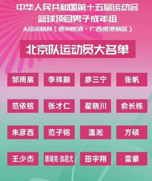 直播吧5月28日訊 第十五屆全運(yùn)會籃球男子成人組運(yùn)動員大名單公布,北京隊(duì)由北京男籃和北控男籃為班底組建。