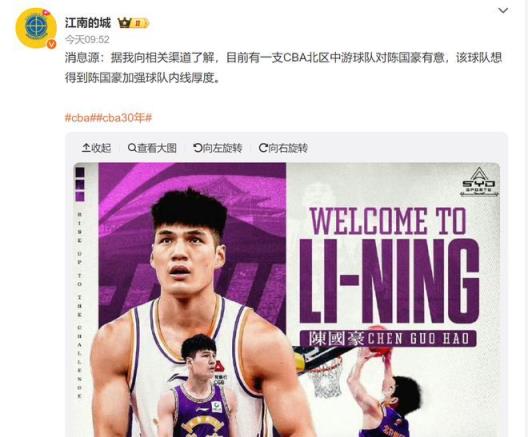 近日據媒體人導演透露,目前CBA聯盟中有5支球隊有意陳國豪,可見有實力的球員是不愁下架的。傳聞就有垂涎三尺的廣東宏遠,以及已在補強的山東男籃。而相比廣東,山東男籃應該是陳國豪的最佳下家。
