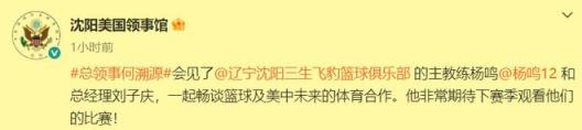 遼籃真有排面!楊鳴劉子慶辦簽證,受到沈陽美國領事館館長接見!