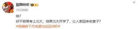 @籃圈師弟:“哈?好不容易考上北大,結果北大開學了,讓人家回來收麥子?”
