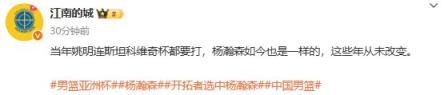 @江南的城:“當年姚明連斯坦科維奇杯都要打,楊瀚森如今也是一樣的,這些年從未改變。”