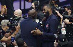 談到他在歷史75大球星表彰儀式上與邁克爾-喬丹的擁抱互動,詹姆斯說:“那太棒了,完全是尊重和欽佩,我肯定是因為喬丹才穿23號的。還有他在我還是個在俄亥俄州阿克倫長大的孩子時給我的激勵,要知道在家鄉我可沒多少激勵。”