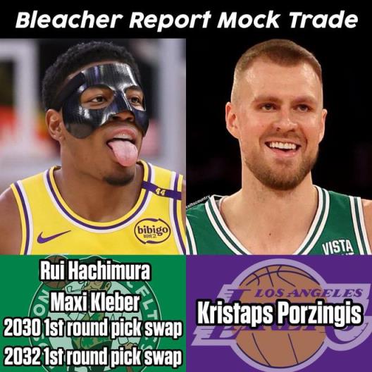 05月20日訊 《露天看臺(tái)》記者安迪-貝利預(yù)測(cè),湖人將送出八村塁、克萊伯,以及2030年和2032年的首輪互換,從凱爾特人交易得到波爾津吉斯。