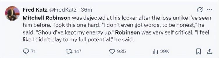 3.米羅在球隊(duì)失利后非常沮喪,他對(duì)自己的表現(xiàn)很自責(zé),他認(rèn)為自己沒(méi)能展示應(yīng)有實(shí)力幫助球隊(duì)。