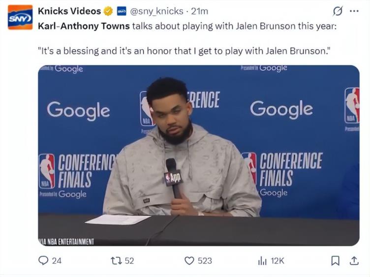 唐斯賽后采訪:能跟布倫森一起打球是我的榮幸,我很幸運(yùn)。