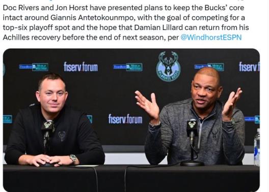 里弗斯也透露球隊在下賽季的目標是能夠進入到季后賽前六,同時他們也希望利拉德能夠在下賽季結束前從跟腱傷勢中走出來。