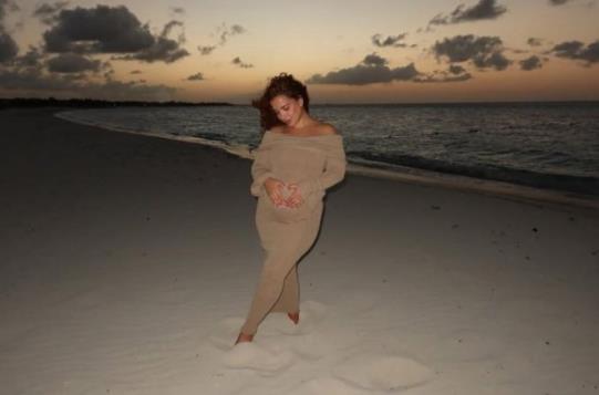 如今李凱爾通過社媒,曬出自己妻子Crystal在海邊的照片,Crystal手捧著大肚子比心,自然是正式官宣他們懷有二胎。