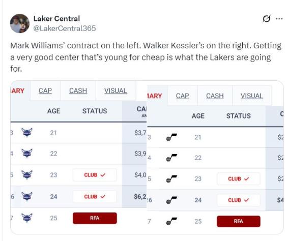 湖人媒體Laker Central透露,湖人今夏的目標是引進一位薪資低又能打先發的五號位,凱斯勒487萬,馬威627萬,這兩人都是湖人的意中人。