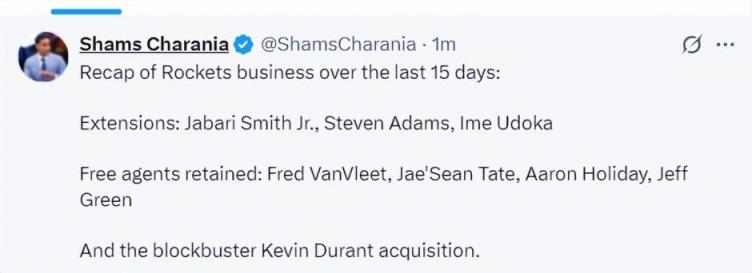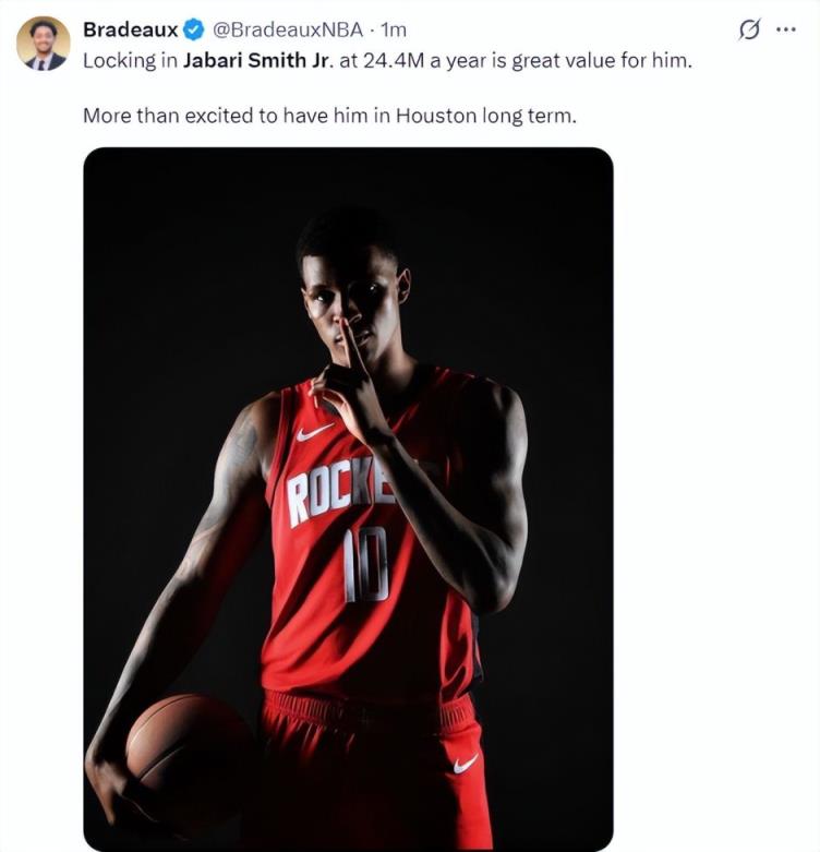 休媒Bradeaux寫道:以均薪2440萬續約火箭,這對于他是非常有利的合同,也很高興看到他長留休斯頓。
