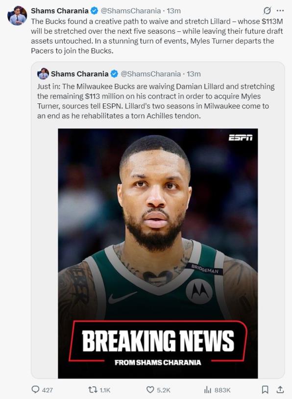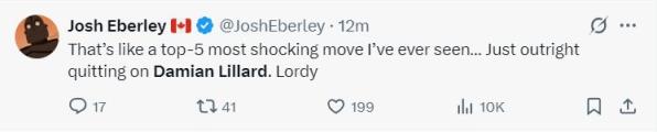 加拿大NBA記者約什-伊比瑞:這簡(jiǎn)直是我見(jiàn)過(guò)最令人震驚的舉動(dòng),直接裁掉利拉德這種行為太離譜了。