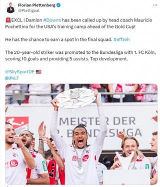 5月21日訊 據德國天空體育記者普萊滕伯格報道,美國隊主帥波切蒂諾征召科隆20歲前鋒達米恩-唐斯。