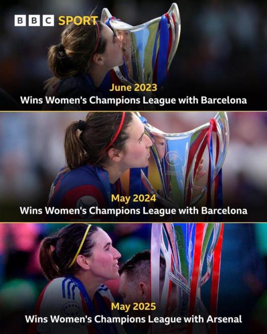 據(jù)數(shù)據(jù)平臺(tái)OPTA統(tǒng)計(jì),現(xiàn)效力于阿森納女足的西班牙前鋒卡爾登泰在近5個(gè)賽季的女足歐冠聯(lián)賽中,隨隊(duì)獲得了其中4次冠軍,其中她3次隨巴薩女足奪冠,1次隨阿森納女足過(guò)關(guān),此外加上本次她已連續(xù)三年捧得女足歐冠冠軍。