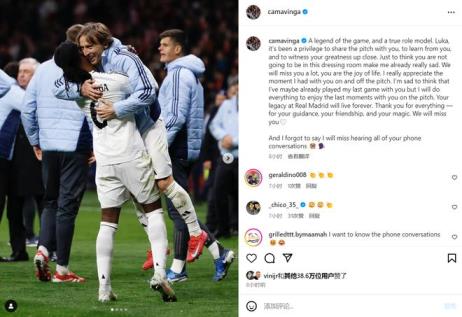 雷速體育5月23日訊 莫德里奇在昨天宣布賽季結束后離開皇馬,皇馬隊友卡馬文加社媒發文告別了魔笛。