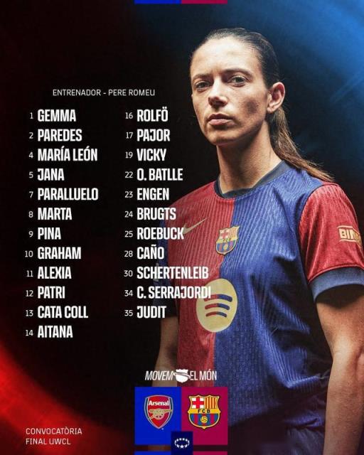 北京時間5月25日0點,巴薩女足將在女足歐冠決賽迎戰阿森納女足。賽前巴薩女足公布了23人大名單,其中普特利亞斯領銜,帕約爾、皮納在列。
