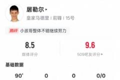 5月25日訊 西甲第38輪,皇馬2-0皇家社會。本場比賽,居勒爾首發(fā)出戰(zhàn),1射門1射正,2次過人成功,送出3次關(guān)鍵傳球,還有3次搶斷,評分8.5全場最高。