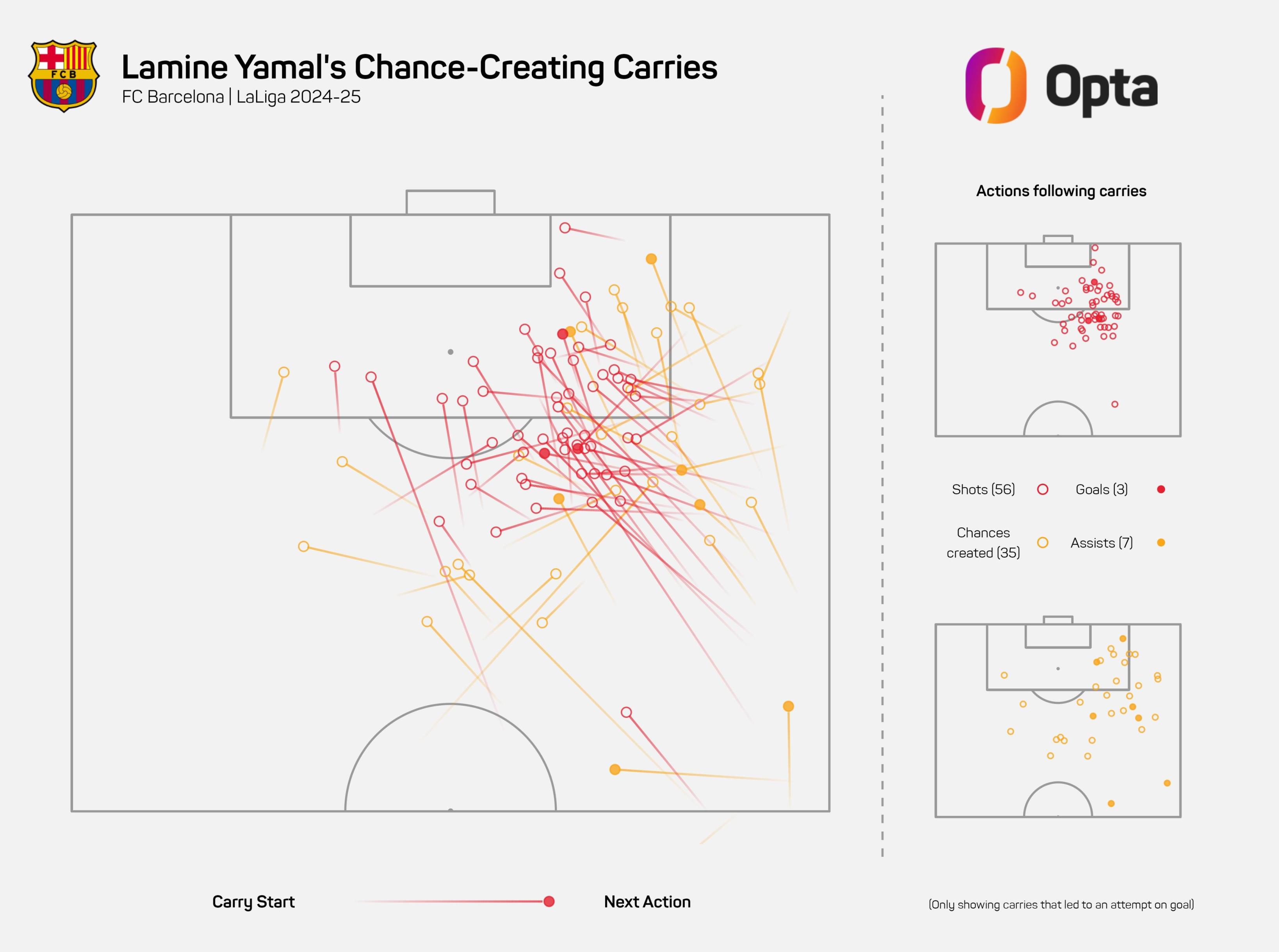 亞馬爾2024/25賽季西甲領跑數據一覽