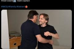 克羅地亞官推曬出莫德里奇與主帥的合照,并配文:“主教練擁抱隊長?!?/p>