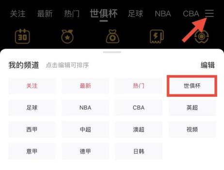 世俱杯頻道現已上線,點擊頻道欄右側【更多】按鈕展開,直達世俱杯頻道(Tips:可以點擊編輯根據您的喜好拖動排序),閱讀更多世俱杯專屬資訊,便捷查看世俱杯賽程、積分、球員榜及更多世俱杯專屬活動>>>
