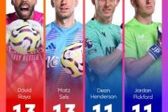 零封場次最多的門將將奪得英超金手套。如果最終零封場次相同,金手套將被共享。